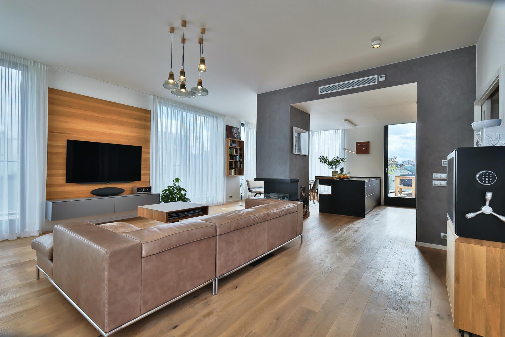 Nadstandardní vybavení této luxusní nemovitosti přispívá k její výjimečnosti. Od klimatizace ve všech místnostech, přes smart home systém, až po kuchyňskou linku prestižní rakouské značky Team 7 se spotřebiči Gaggenau – každý detail byl pečlivě vybrán pro zajištění maximálního komfortu a luxusu.